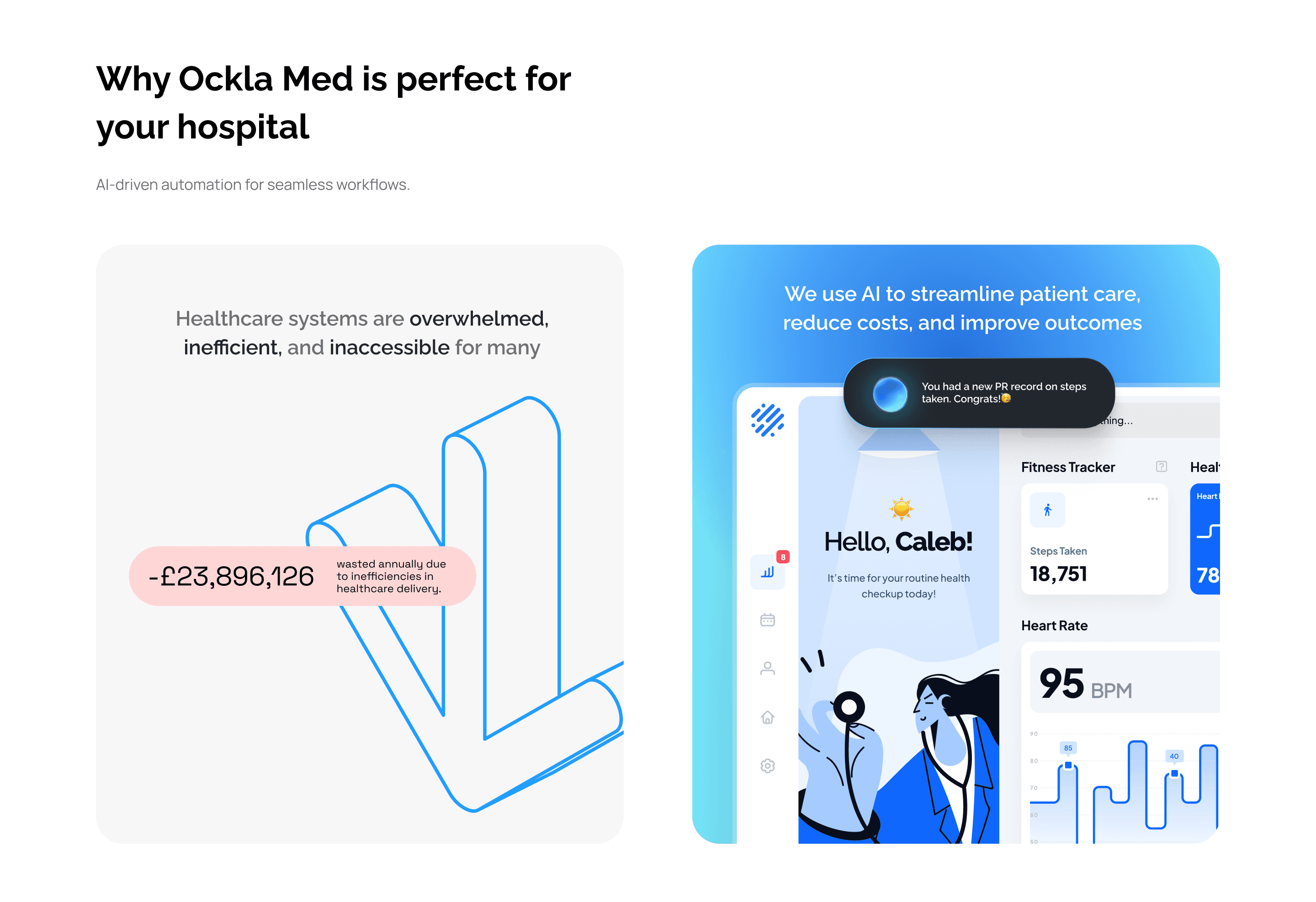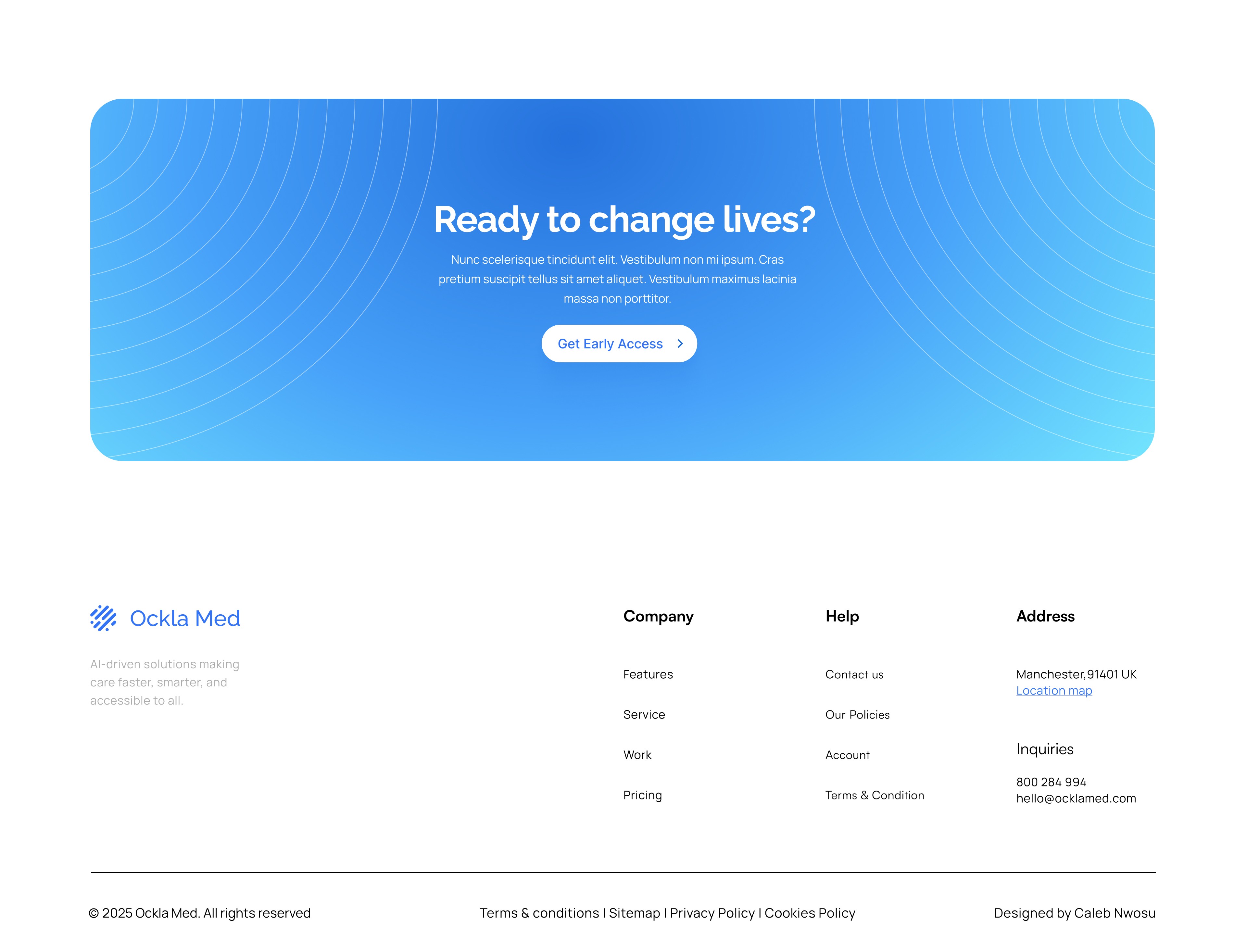 A bold, intuitive, and visually striking landing page that positions a MedTech startup as a game-changer in UK healthcare. By showcasing AI-driven solutions, the aim was to design a solution that not only highlights innovative patient care but also inspires potential users—healthcare providers and patients alike—to take action and join a movement toward smarter, more accessible health services using AI.