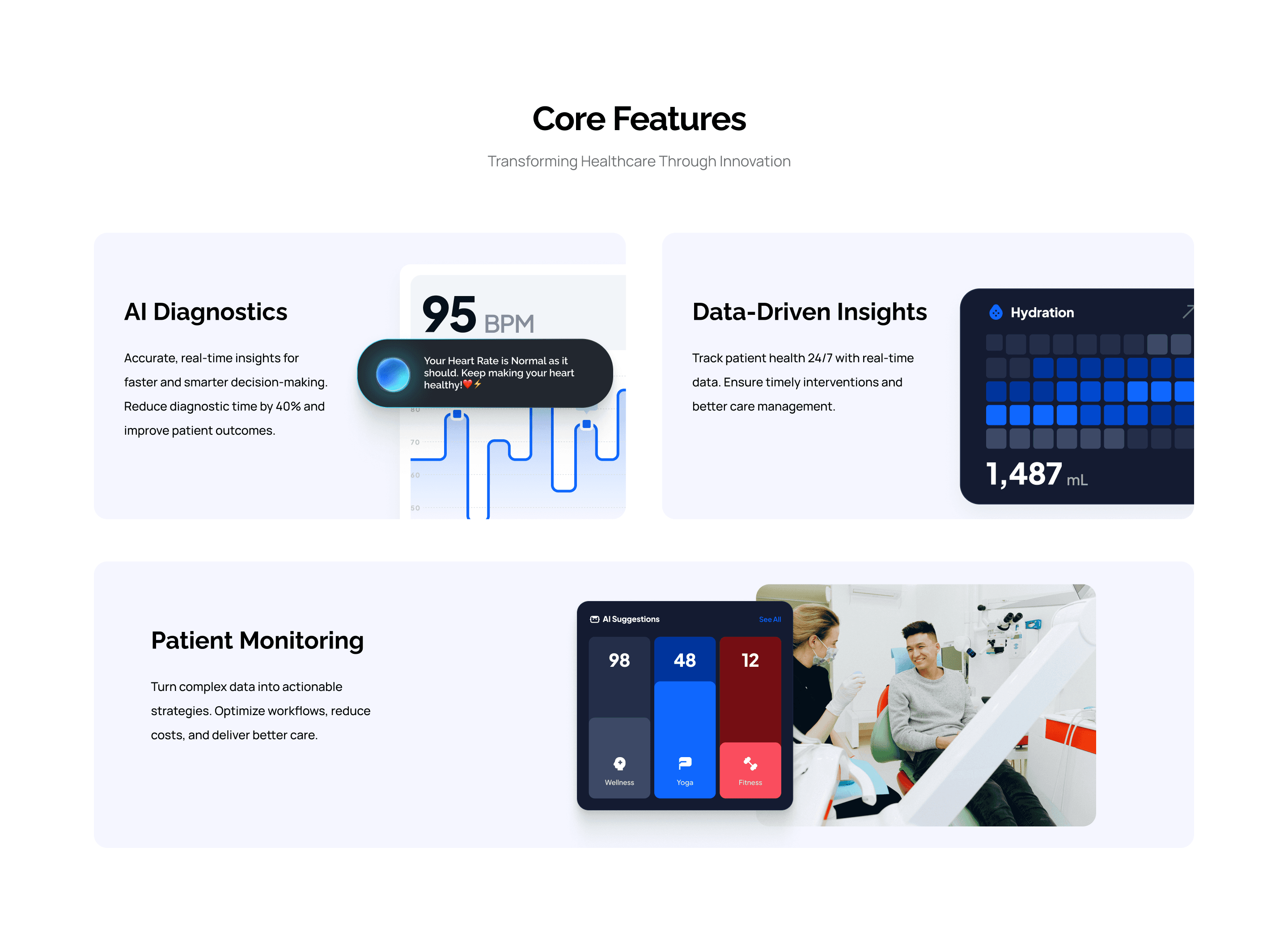 My goal was to create a visually unique, intuitive landing page that showcases the startup’s innovative healthcare solutions and drives user engagement. A landing page that stands out from generic, uninspired healthcare websites, capturing their AI-driven mission and inspiring action.